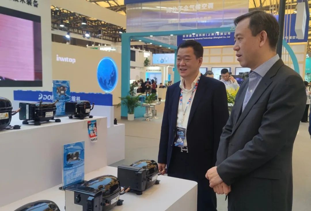 會上,東貝集團總裁朱金明,壓縮機公司營銷副總吳巧飛、技術研發總工戴競雄、供應鏈總經理助理程文俊一行參觀了公司展臺,接見了來訪客戶,并同他們深入交流,介紹公司最新產品和新的研發成果。